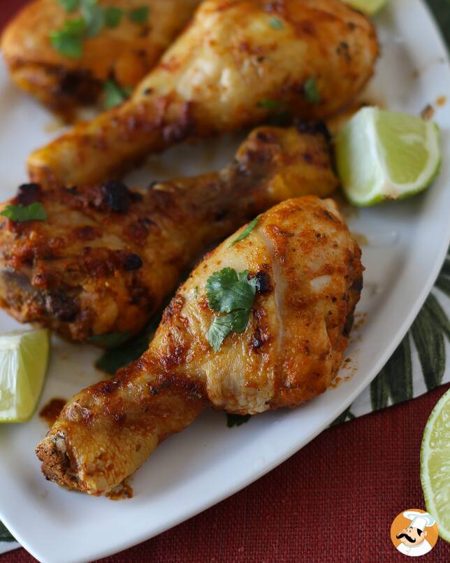 Wir haben kleine Hähnchenschenkel verwendet und sie mit Limettensaft und verschiedenen Gewürzen mariniert, die dem Fleisch einen einzigartigen Geschmack verleihen. Hähnchenschenkel nach mexikanischer Art sind ein schmackhaftes Gericht, reich an Geschmack und unglaublich einfach in der Zubereitung. Die Marinade aus Limette, Kreuzkümmel, Paprika und Chili verleiht dem Fleisch eine würzige und aromatische Note, die sich beim Garen noch verstärkt. Sie sind nicht nur schnell zubereitet, sondern auch äußerst preiswert. Die Hähnchenschenkel nach mexikanischer Art eignen sich perfekt für ein Abendessen mit der Familie oder mit Freunden und sind die perfekte Lösung für alle, die ein schmackhaftes Gericht suchen , ohne zu viel Geld auszugeben!