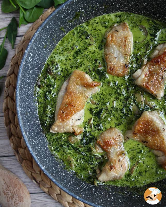 Hähnchen mit Rahmspinat und Champignons ist ein perfektes Rezept für alle, die ein proteinreiches, gesundes und schmackhaftes Gericht suchen. Hühnerfleisch, die Hauptquelle für mageres Eiweiß, wird mit der Cremigkeit von Spinat und Pilzen kombiniert, wodurch ein nahrhaftes und ausgewogenes Gericht entsteht. Diese Kombination trägt nicht nur zur Deckung des Eiweißbedarfs bei, sondern liefert auch eine gute Dosis wichtiger Vitamine und Mineralstoffe und ist damit ideal für eine vollständige und schmackhafte Mahlzeit.