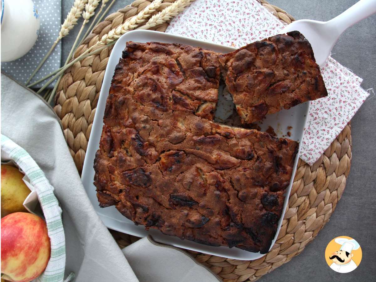 Diese Version kombiniert den süßen Geschmack von Äpfeln mit dem kräftigen Geschmack von Walnüssen und dem warmen Duft von Zimt. Grob gehackte Walnüsse werden in den Teig gemischt und sorgen für ein angenehmes Knacken, während der Zimt dem Kuchen ein würziges Aroma verleiht, das perfekt zu den Äpfeln passt. Mit seiner Kombination aus warmen und umhüllenden Aromen ist dieser Apfelkuchen eine wahre Ode an den Herbst. Perfekt, um an kalten Tagen Herz und Gaumen zu erwärmen .