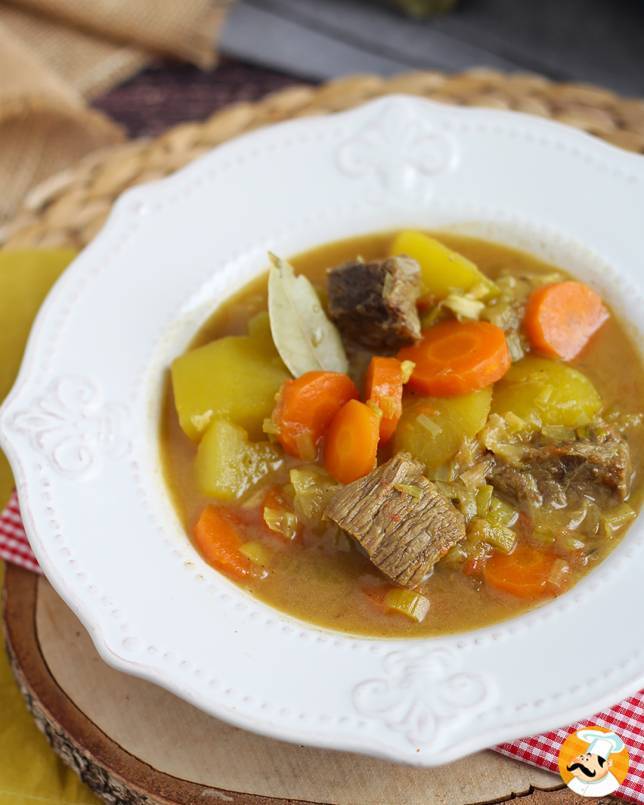 Ein gemütlicher Klassiker der Hausmannskost, bei dem Rindfleisch mit Kartoffeln, Karotten und Gewürzen zu einem dicken, schmackhaften Eintopf geschmort wird. Perfekt für kalte Tage und zum Eintauchen in Brot.