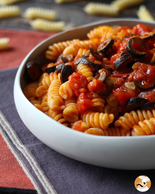 In weniger als 20 Minuten zubereitet, mit einfachen Zutaten, die man immer in der Speisekammer hat (Tomatenmark, schwarze Oliven, Knoblauch und ein Schuss Öl), ist dieses Rezept der perfekte Verbündete, wenn die Zeit knapp ist, aber die Lust auf ein gutes Essen nicht fehlt. Leicht, schmackhaft und schnell zubereitet, sind Nudeln mit Olivensauce eines dieser schnellen und einfachen Rezepte, mit denen man in letzter Minute und ohne Stress ein Mittag- oder Abendessen zubereiten kann. Es ist ein Kinderspiel, es auf den wöchentlichen Speiseplan zu setzen, vor allem wenn Sie sich fragen, wie Sie Ihre Woche mit schnellen, aber dennoch schmackhaften und sättigenden Gerichten gestalten können.