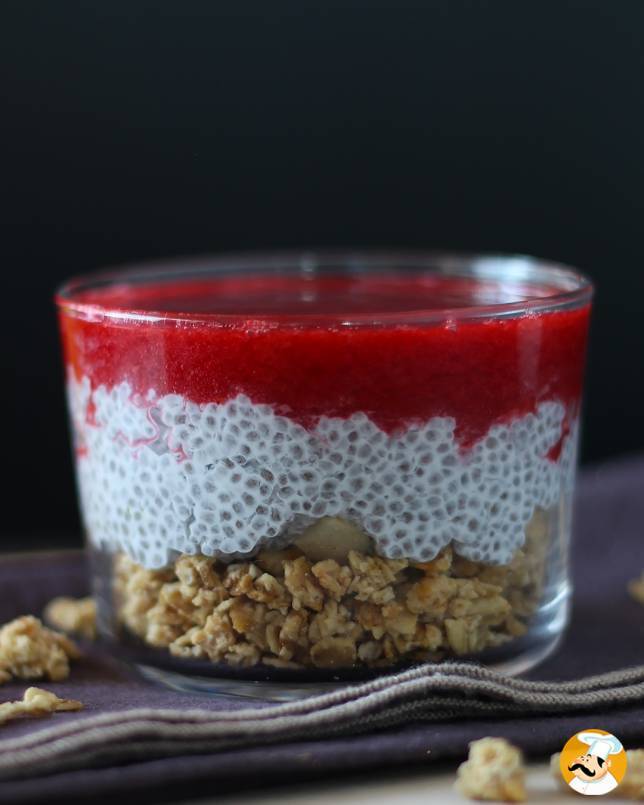 Der berühmte Chia-Pudding ist so einfach, wie die Samen mit pflanzlicher Milch zu tränken und ziehen zu lassen. Für zusätzliche Köstlichkeit fügen Sie Müsli für Crunch und Himbeeren für eine fruchtige Note hinzu. Folgen Sie unserer Schritt-für-Schritt-Anleitung und genießen Sie es, sich selbst zu verwöhnen.