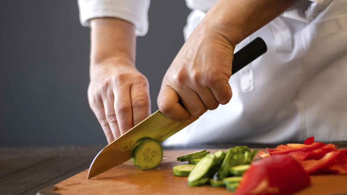 Ein stumpfes Messer schneidet nicht gut, es zerquetscht die Zutaten, anstatt sie zu schneiden, und ist außerdem gefährlicher, weil es mehr Druck zum Schneiden erfordert. Um dies zu vermeiden, sollten Sie Ihre Messer regelmäßig mit einem hochwertigen Wetzstahl oder einem Schärfgerät schärfen.