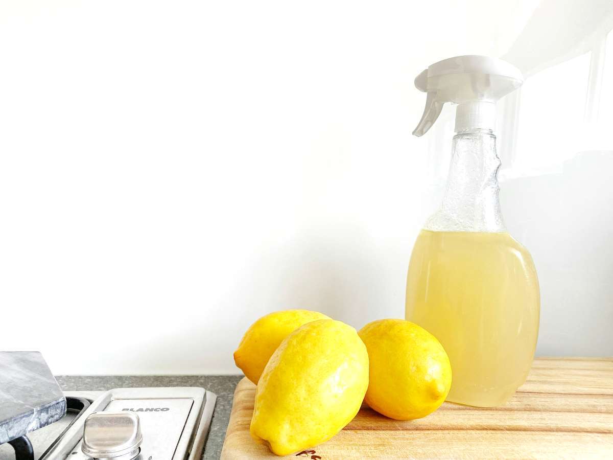 Weißer Essig ist ein hervorragendes natürliches Desinfektionsmittel und eignet sich perfekt zum Reinigen von Küchenoberflächen. Dank seines Säuregehalts beseitigt er Bakterien und Fettrückstände auf Arbeitsflächen, Utensilien und sogar Haushaltsgeräten wie Mikrowellen oder Kühlschränken. Es ist eine sichere Alternative zu chemischen Produkten, vor allem in Räumen, in denen Sie Mahlzeiten zubereiten.