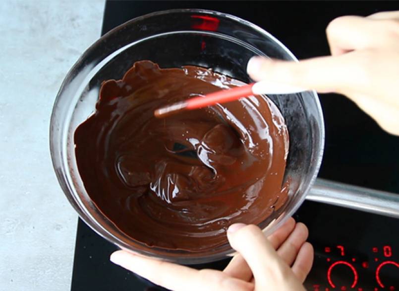 • Die Schokolade in einer Schüssel im Wasserbad schmelzen.