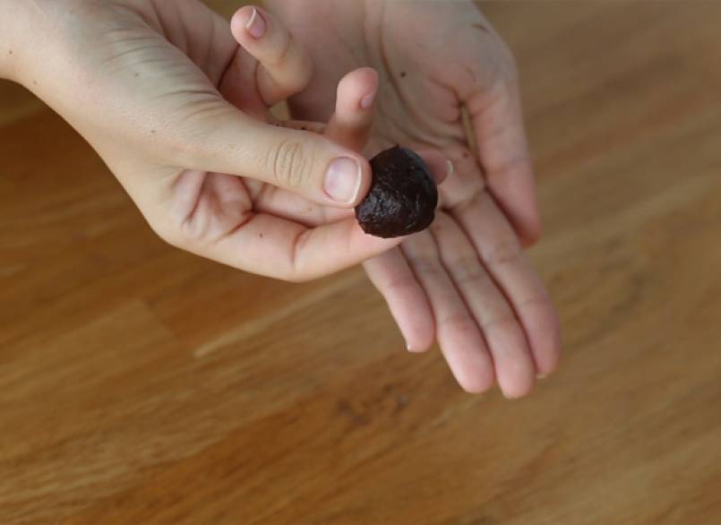 • Mit einem Löffel so viel abstechen, dass eine Kugel entsteht. Mit der Hand formen.