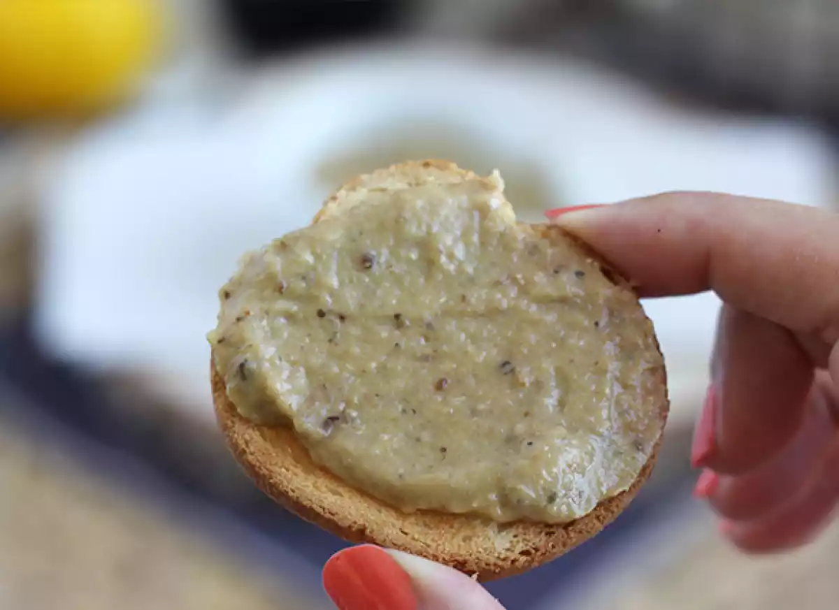 Vegetarischer Auberginenkaviar ist eine vielseitige Zutat, die in einer Vielzahl von Rezepten verwendet werden kann, von Canapés bis zu Salaten, und jedem Gericht eine Gourmet-Note verleiht.