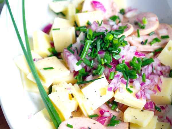 I love südtirol: schwarzplentene käseknödel mit lauchschmalz und speckkrautsalat