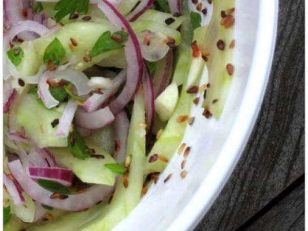 Gurkensalat mit zerstoßenem knoblauch und ingwer