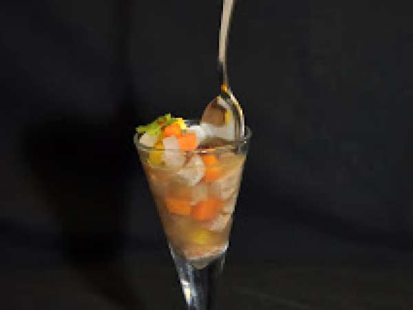 Clear tomato bouillon with basil oil