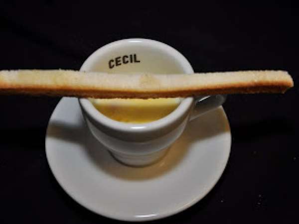 Mozzarella soup with anise toast and bacon oil