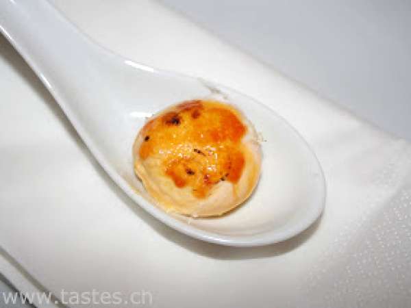 Caramelisiertes eigelb - gefüllt mit tapenade