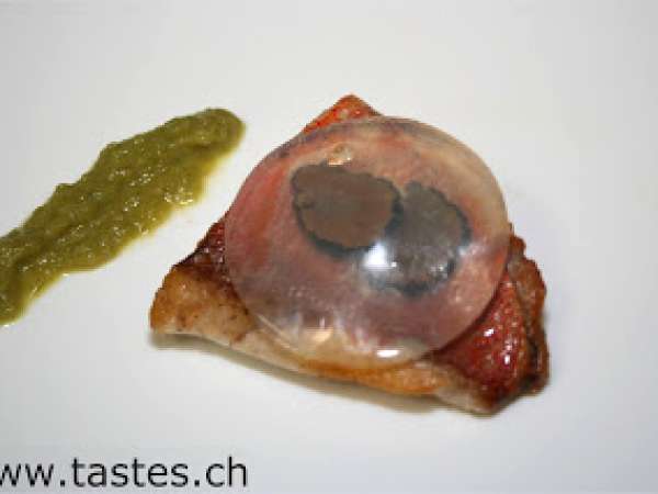 Red snapper with black truffles and clear cauliflower