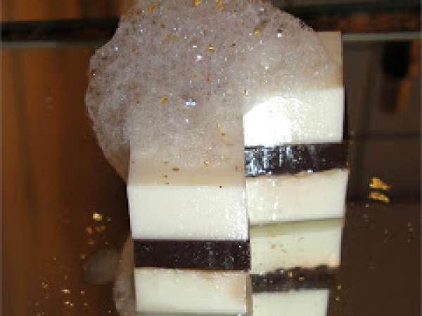 Honey milk and chocolate with cardamom milk foam and gold dust