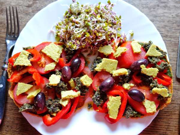 Rote bete-carpaccio mit gebratenen kräuterseitlingen