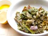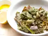 Gedünsteter spargelsalat mit avgolemono und polenta