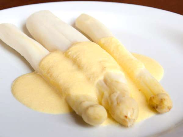 Weisser spargel mit einfacher sauce hollandaise