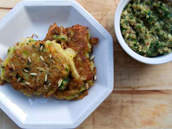 Fenchel und feta keftedes (köfte) mit walnuss dipp