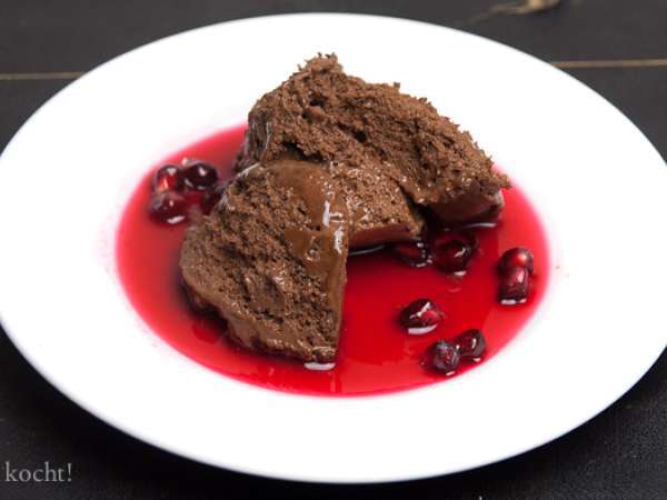 Mousse aux chocolat mit granatapfelsirup