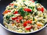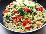 Rote linsen mit quittenkompott und karamelisierten zwiebeln