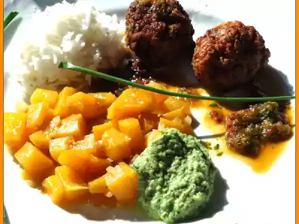 Reissalat mit hähnchen, zucchini, pinienkernen und balsamico-glasur