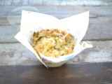 Zutaten: 250 gr. Mehl 180 ml Wasser, kochend heiß 150 gr. gegartes Fleisch 50 gr. gegartes Gemüse 50 gr. Spinat, gegart, Flüssigkeit ausgedrückt. 50 gr....