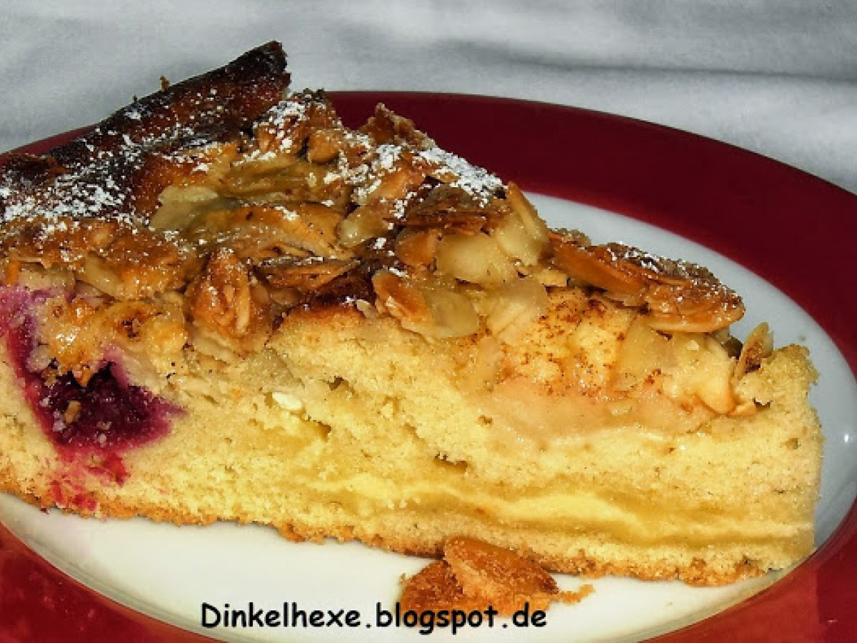 - Eine Springform oder Tarteform einfetten mit Mandelblättchen auslegen. Den Teig in die Form füllen.