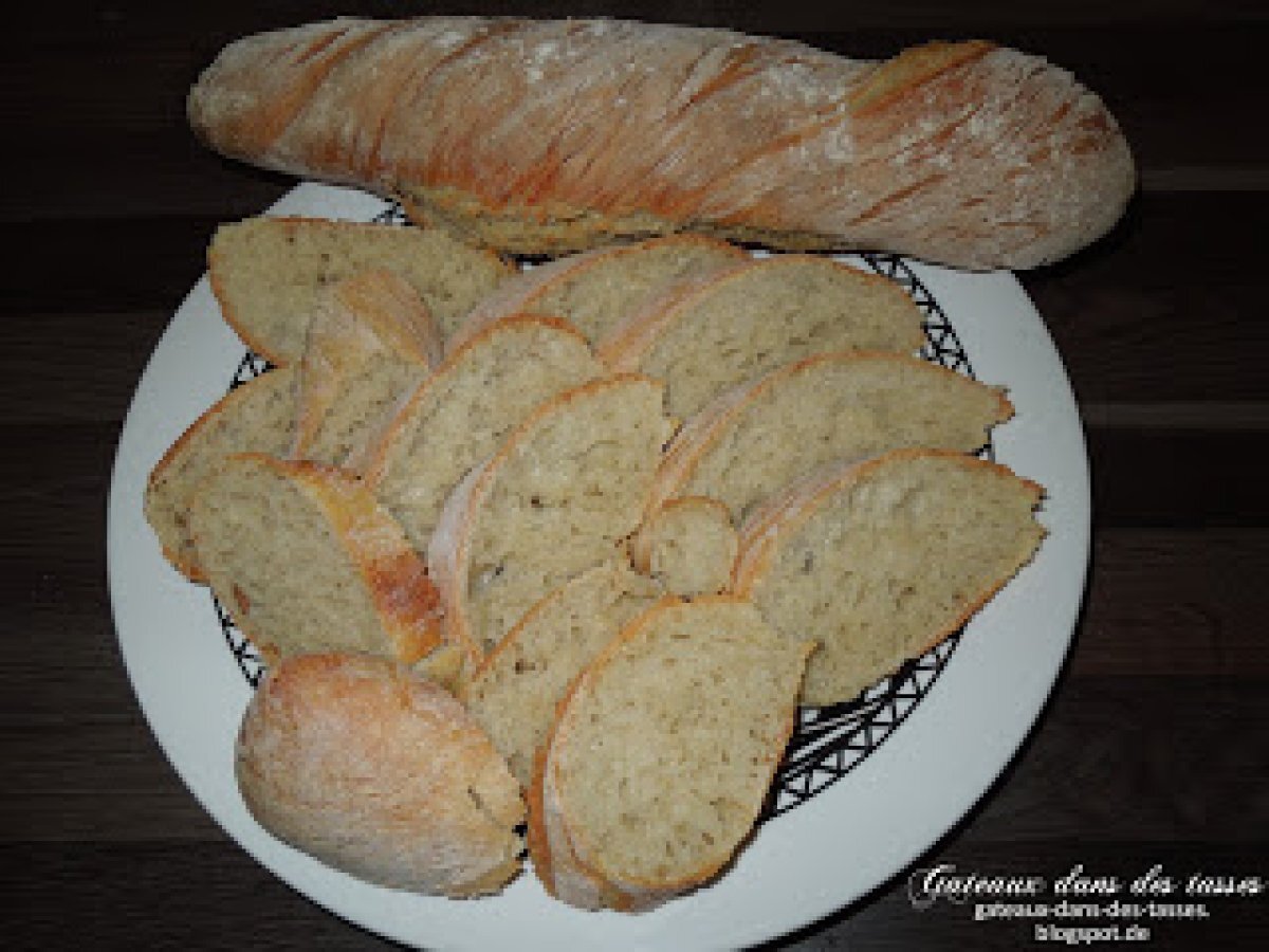 - Zu guter letzt stäubt ihr noch etwas Mehl über das Baguette und gebt es auf einem Backpapier in den Ofen.