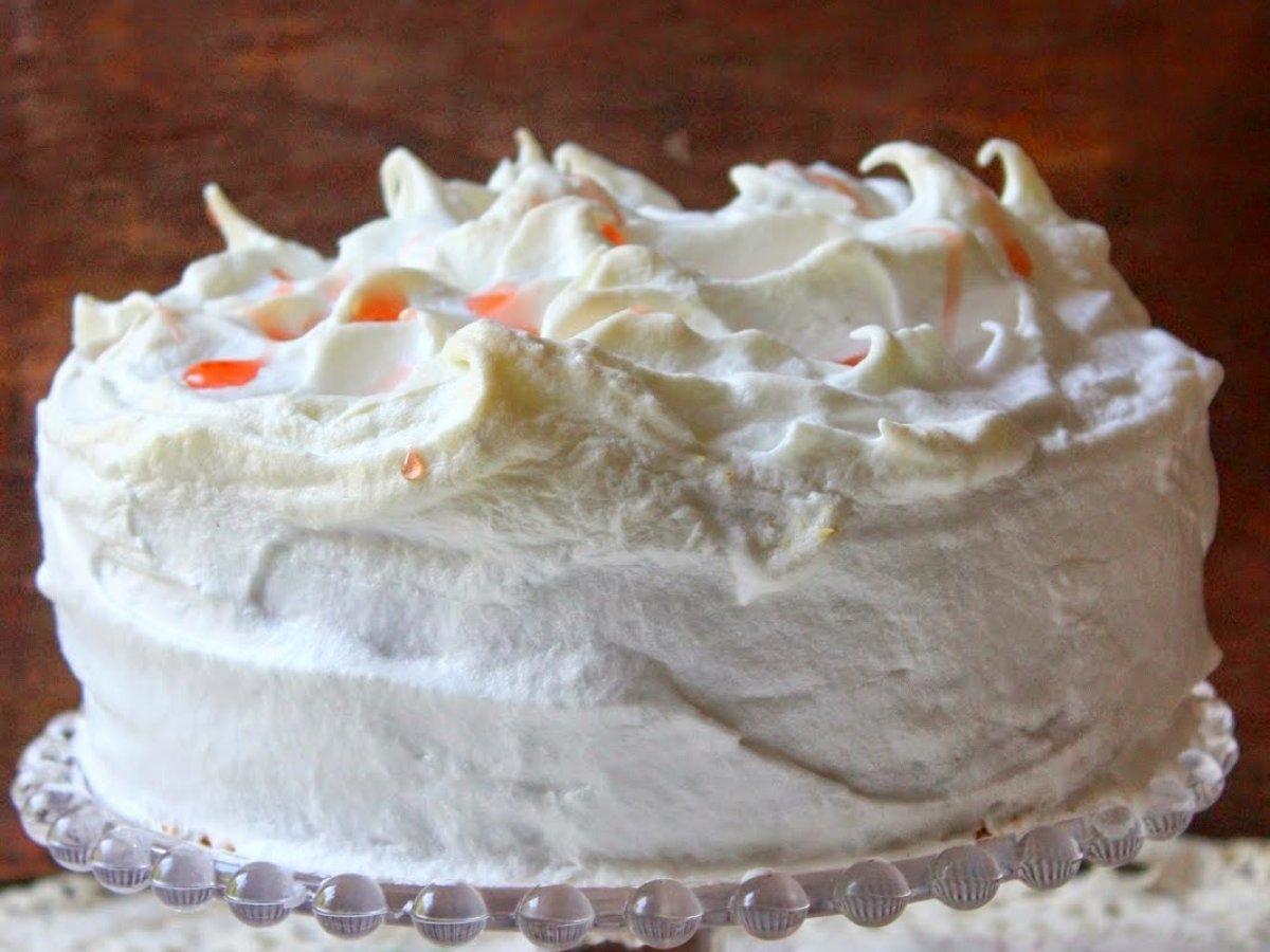 Den Ofen auf 120° bei Ober/Unterhitzevorheizen. Den Rand vom Kuchen entfernen. Himbeermarmelade mit 1 Teelf. Wasser leicht verdünnen. - Damit die Torte bestreichen. Darüber den Baiser bestreichen. Über die Torte mit Löffel Wellenformen geben. Im Backofen ca. 20 Minuten backen. Der Baiser soll vom außen knusprig und vom innen weich sein.