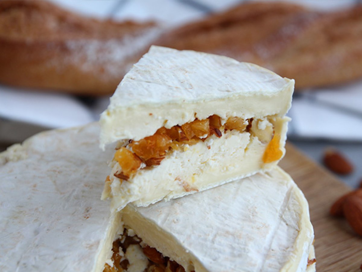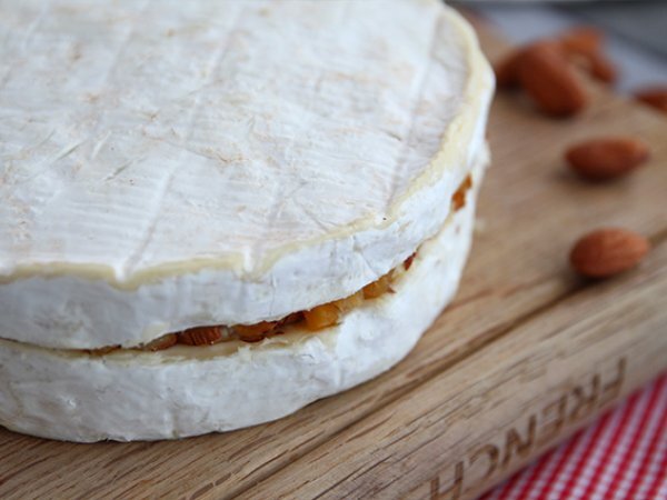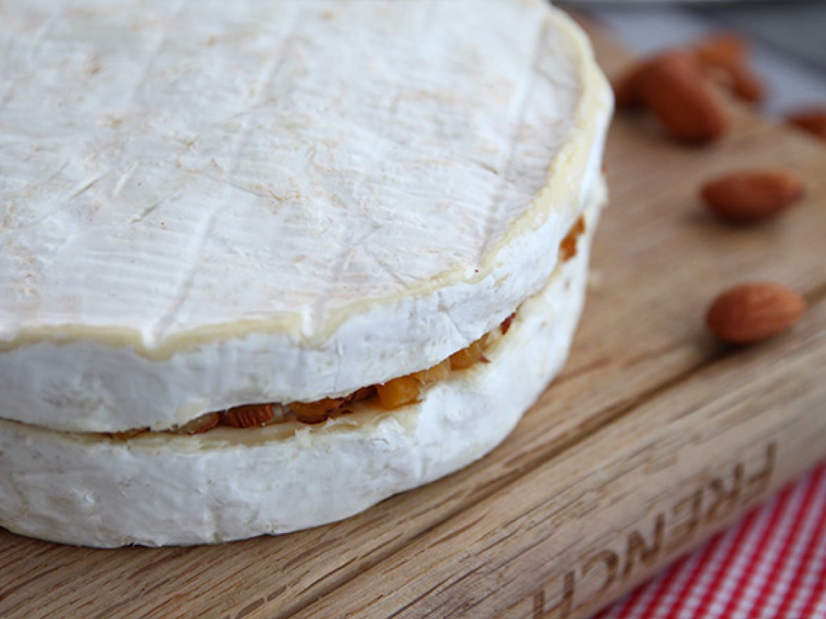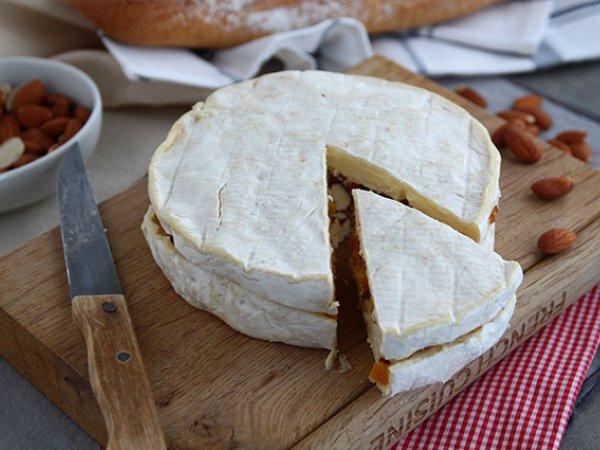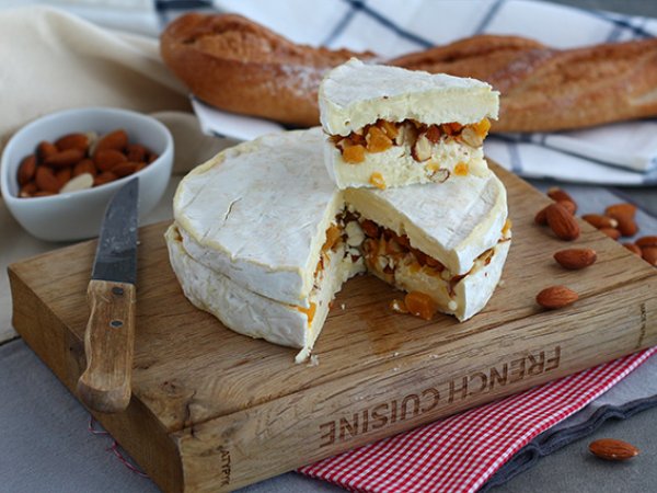 Fertig ist der mit Mandeln und getrockneten Aprikosen gefüllte Brie!