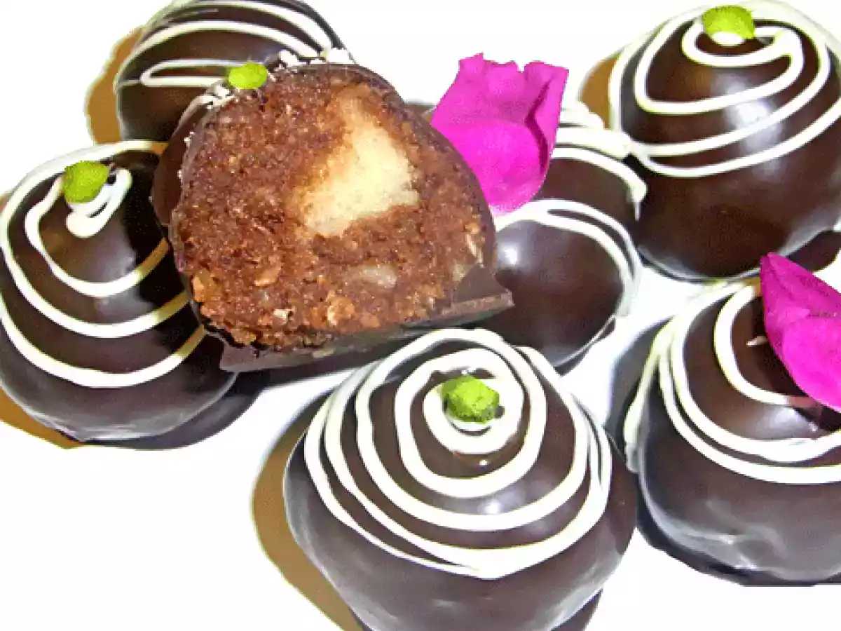 - Block Chop Schokolade und Platz auf der einen Seite der Schüssel. In Aprikosenmarmelade auf der anderen Seite. Sobald die Schokolade zu schmelzen beginnt, zunächst getrennt, dann mischen alles.