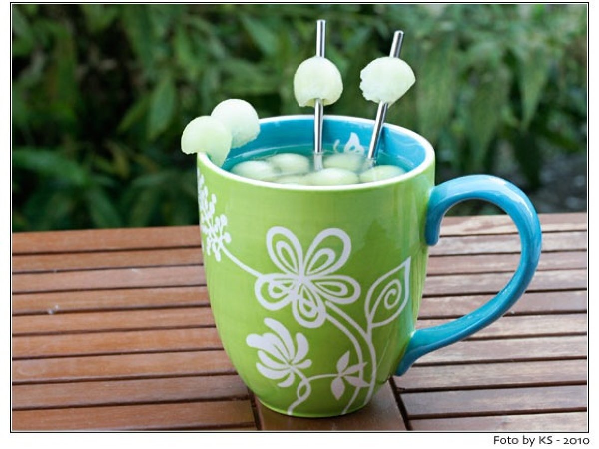 - Der Express-Zitrone, mischen den Saft mit Wodka und Zucker und fügen Sie die Melonenkugeln.