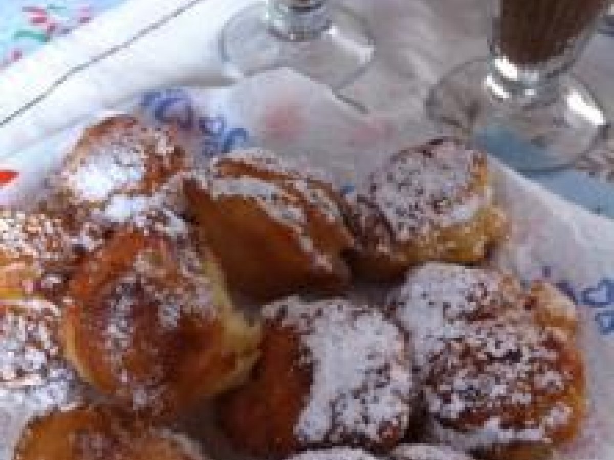 - An einem warmen Ort a. 30 Minuten gehen lassen. Mit einem Löffel Nocken abstechen und in heißem Öl goldbraun backen. Auf de Küchenpapier abtropfen lassen und mit Staubzucker bestreuen.