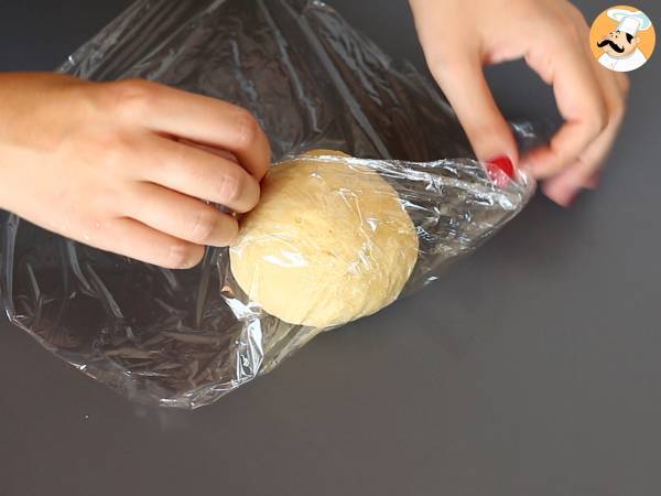 Sobald der Teig fertig ist, wickeln Sie ihn in Frischhaltefolie ein und lassen Sie ihn etwa 30 Minuten bei Zimmertemperatur ruhen