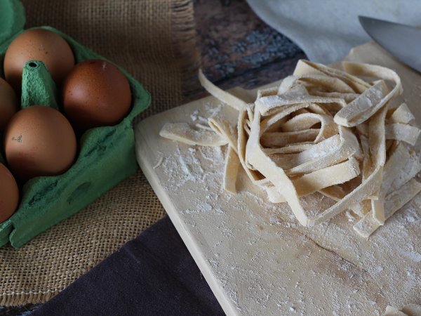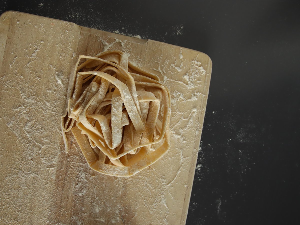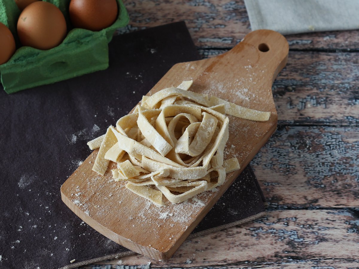 Frische, hausgemachte Tagliatelle sind fertig, Sie müssen sie nur noch kochen und nach Geschmack würzen!