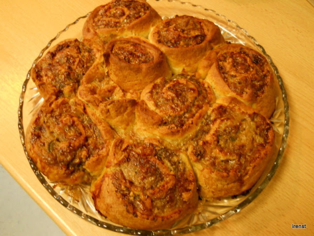 - Verteilen Sie die Fleischmischung auf und rollen Sie die lange Seite.