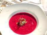 - Die Kartoffeln abkochen und durch eine Kartoffelpresse drücken, nun die Rote Bete Würfel, Alsan und Sojasahne unterheben und mit Salz und Pfeffer würzen.