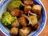 - 2 El Öl in einer Pfanne erhitzen und den Tofu von beiden Seiten ca