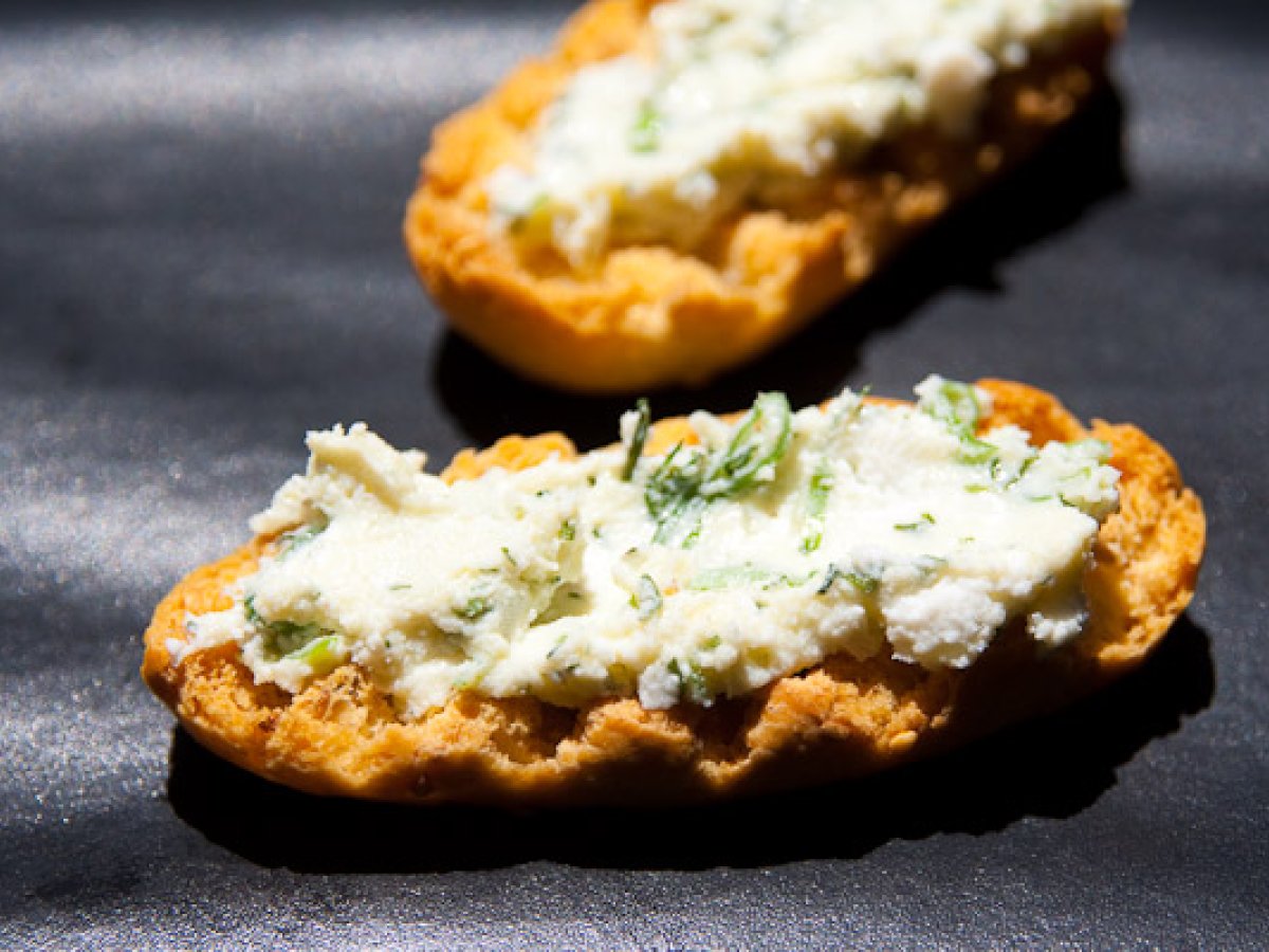 - Mischen Sie Käse mit gehackten Kräutern, Knoblauch-Paste und Olivenöl und kalt stellen.