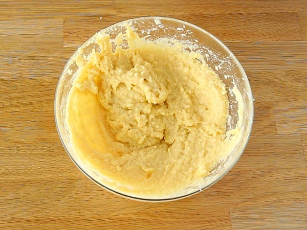 Die weiche Butter mit dem Zucker verrühren. Dann die Eier dazugeben und gut verrühren.