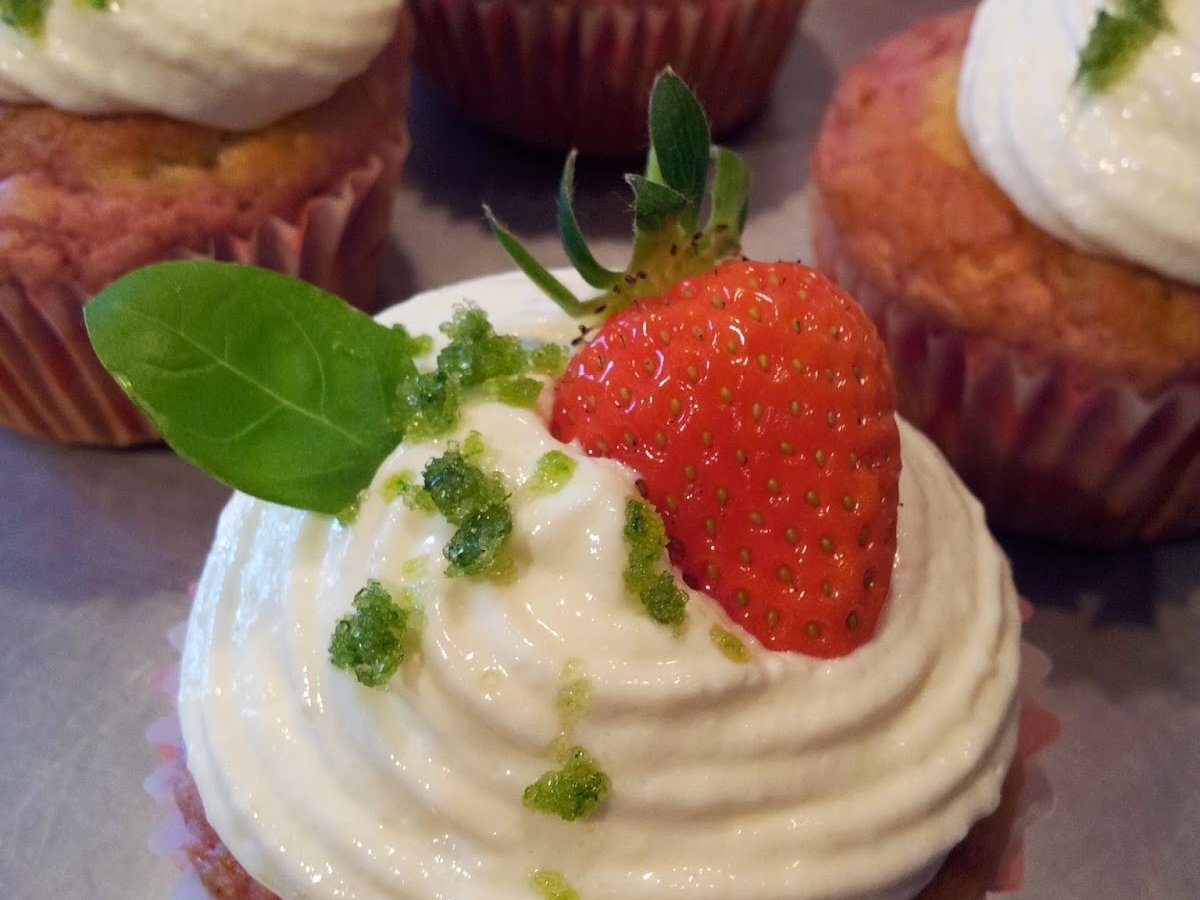 Muffin mit schmandhaube und basilikumzucker