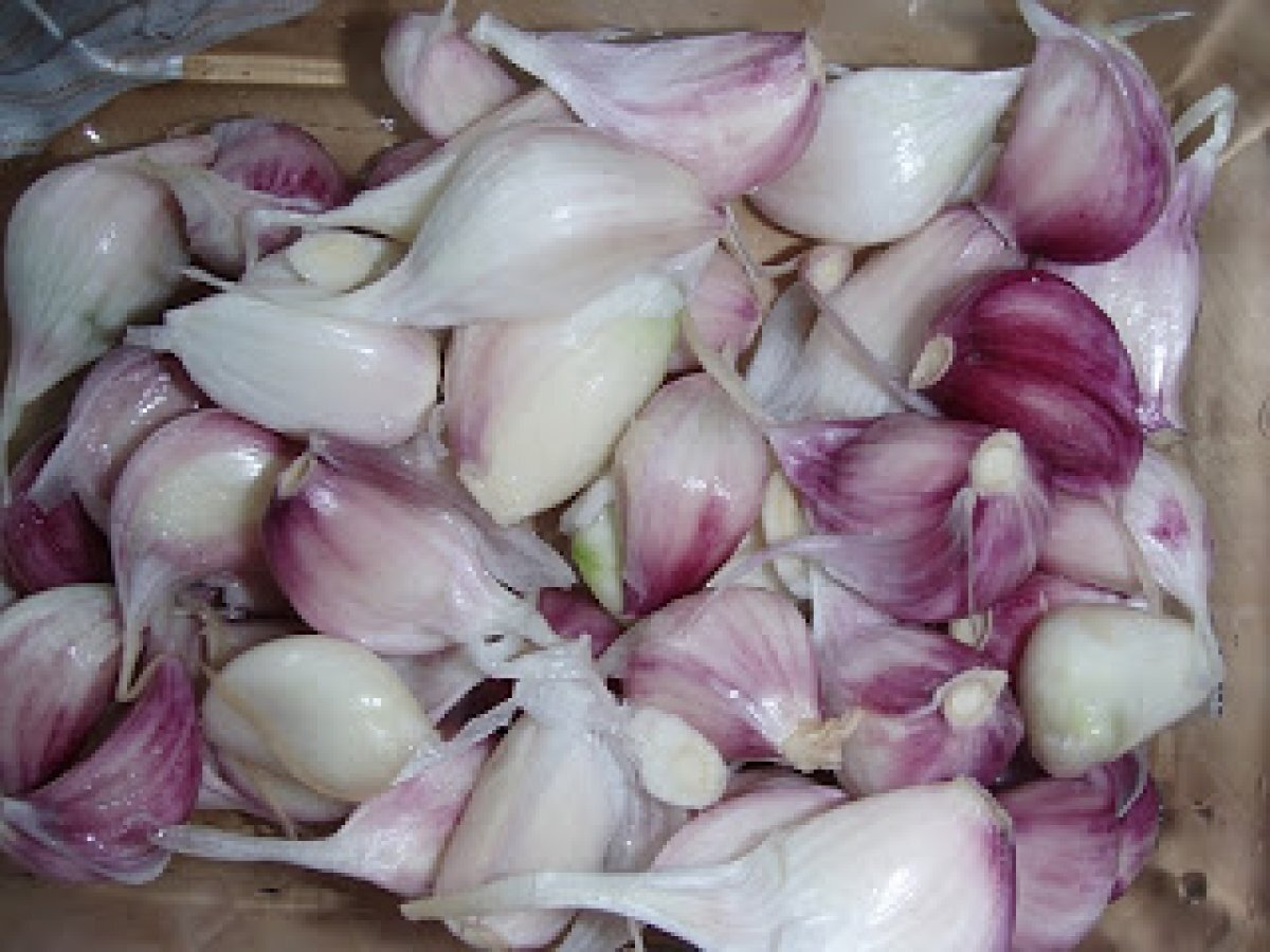 - Clove frischem Knoblauch in eine Schüssel geben und 20 Sekunden lang einige blanchiert.
