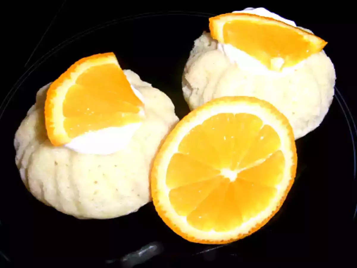 Haben sie ein Muster und wenden Sie dann. mit 1 Teelöffel saure Sahne sitzt in der Mitte und schieben ein Viertel einer Orangenscheibe.
