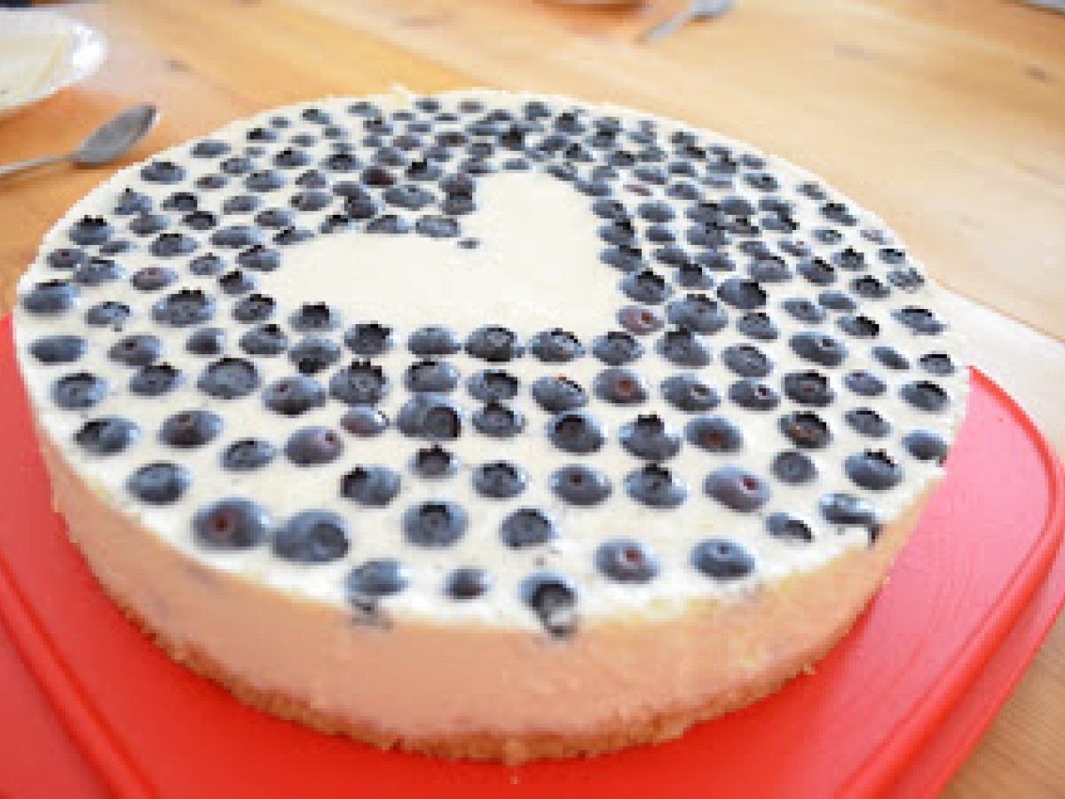 - Die Gelatine unter ständigem Rühren langsam in die Philadelphiacreme geben und mit der Hälfte der Heidelbeeren vermischen.