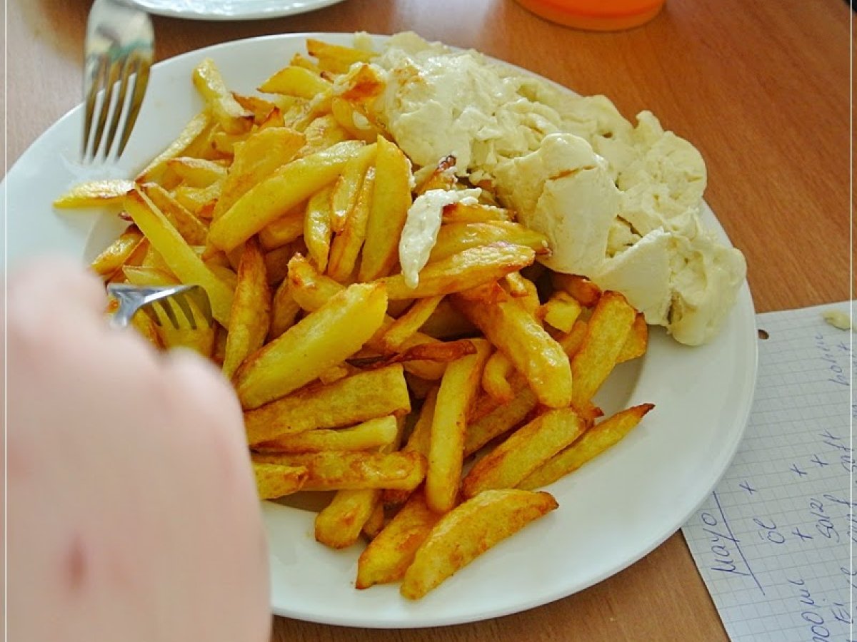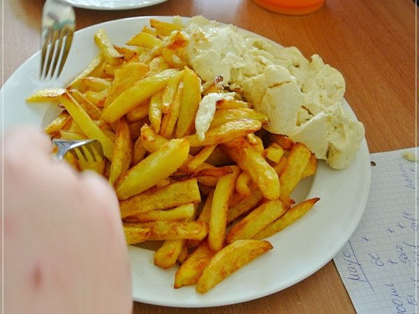 - Die Pommes aus dem Ofen holen und bei Bedarf nochmals nachwürzen.