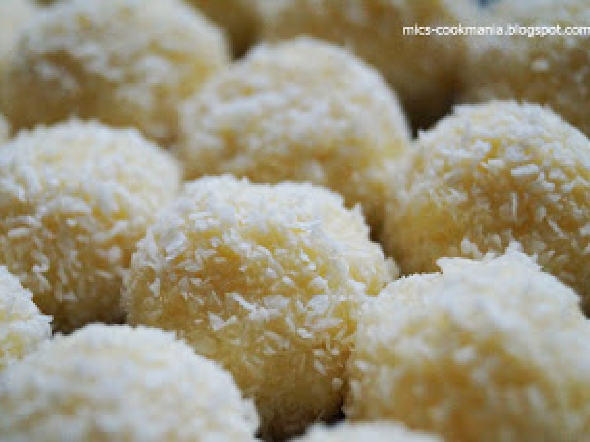 - Rollen die Kugeln in geriebener restlichen Kokos Nussbaum