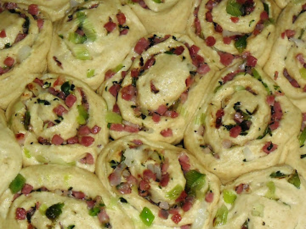 - Den Teig die lange Seite, in 3 cm dicke Rollen geschnitten und werfen wie ein rosa Kuchen in eine gefettete Scharnier.