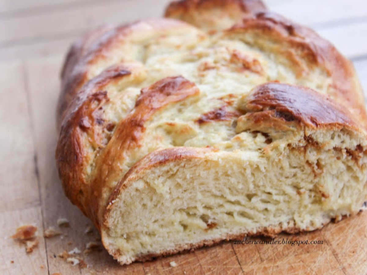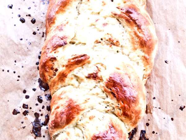 - Verteilen Butterflöckchen auf dem Zopf und betreichen mit viel Milch. Geflecht an der unteren Schiene von Kochen für etwa 30 Minuten. Hin und wieder mit restliche Milch zu putzen.
