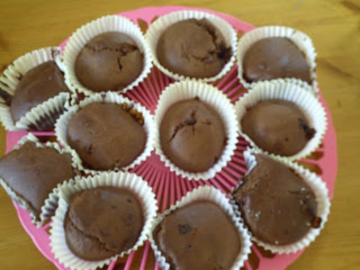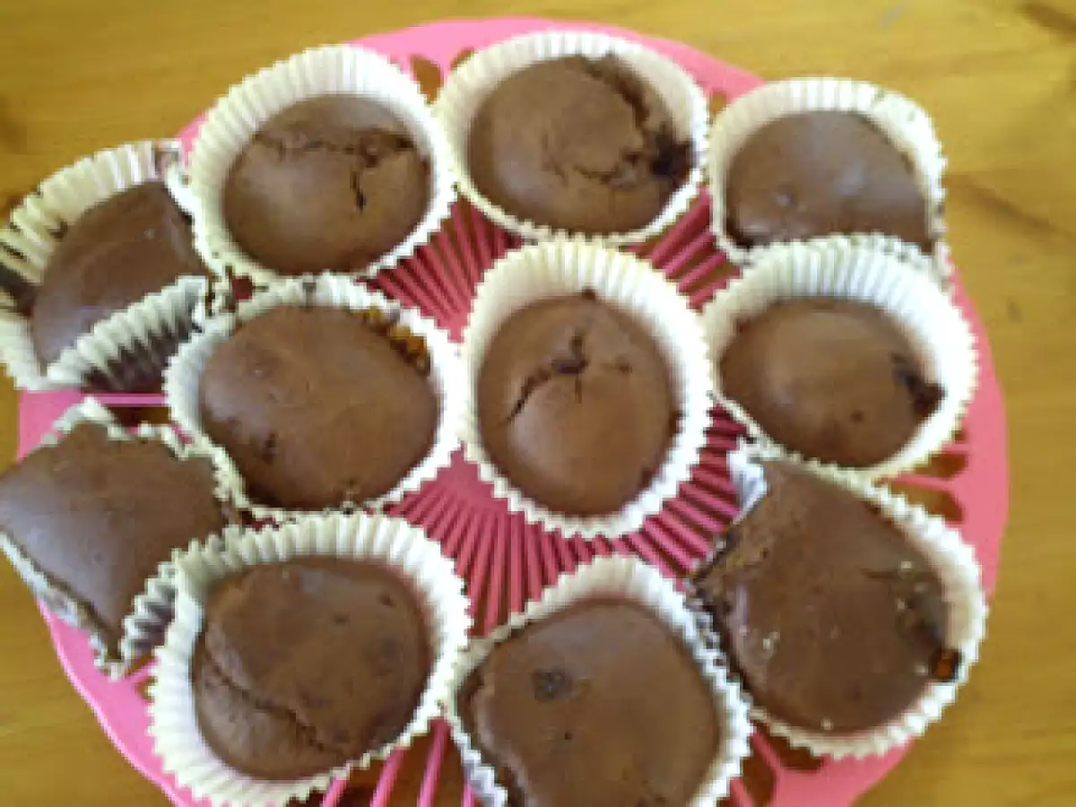 - Zuletzt die Schokostückchen unterheben, in kleine Muffinförmchen füllen und im Backofen bei 200° C ungefähr 25 Minuten backen.