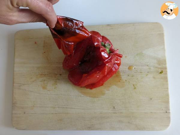 Nun können Sie die Paprikaschoten mit den Händen schälen.